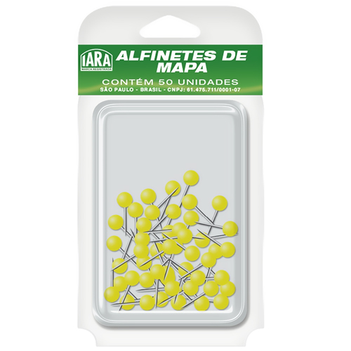 Alfinete P/ Mapa Amarelo C/ 50 Unidades Iara