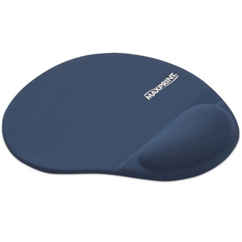 A base para mouse MAXPRINT é revestida com tecido para maior suavidade no toque, tem o design ergonômico com descanso para pulso em gel e a base em borracha antideslizante.