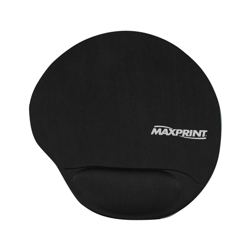 A base para mouse MAXPRINT é revestida com tecido para maior suavidade no toque, tem o design ergonômico com descanso para pulso em gel e a base em borracha antideslizante.