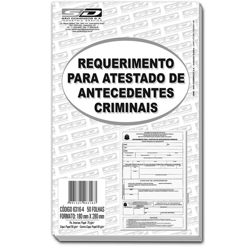 Atestado de Antecedentes Criminais 50 Folhas São Domingos