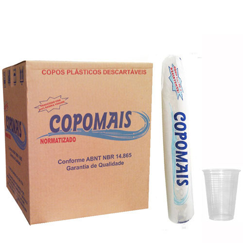 Copo 200ml ABNT Branco Caixa C/ 2500 Unidades Copomais Copo plástico de 200ml Utilização: Água, refrigerantes, sucos, etc. Cor: Branco Embalagem: 100 Caixa: 5000 Normatizados conforme padrão ABNT