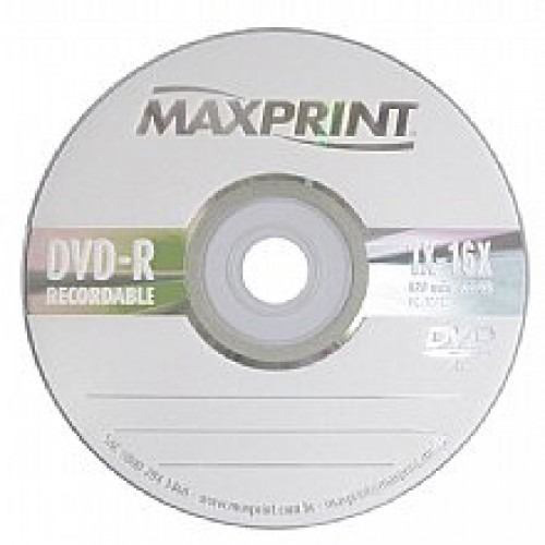 DVD-R Light Scribe Maxprint DVD de gravação única Indicado para armazenamento de, áudio, vídeo, programas para computadores, documentos, jogos, imagens digitais, e outros tipos de dados Velocidade: 16x Capacidade de armazenamento: 120 min / 4.7gb Embalagem: Contém 50 unidades