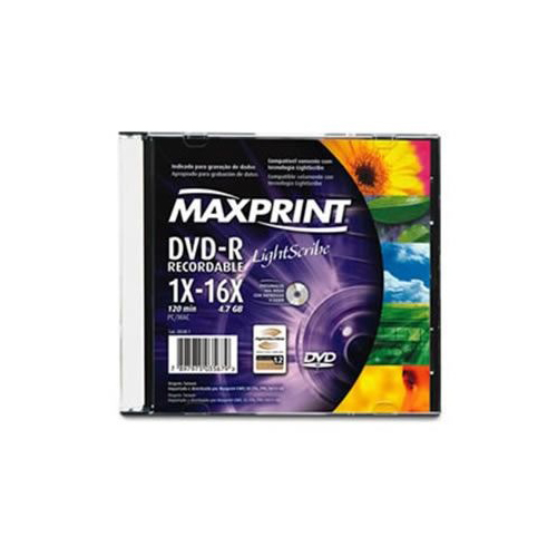 DVD-R Gravável 4.7GB C/Envelope Maxprint DVD de gravação única Ideal para documentos em geral, jogos, vídeos, músicas, entre outros Velocidade: 16x Capacidade de armazenamento: 120 min / 4.7g Embalagem: Contém 1 unidade