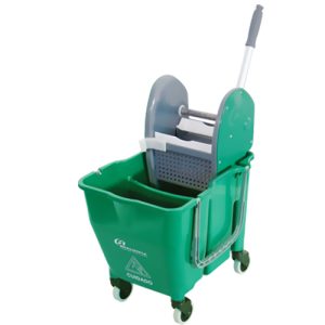 A segunda divisória recebe água de enxague para que o refil seja lavado sempre que for passado nos pisos deixando-o mais limpo para que seja mergulhado na primeira divisória com a solução que está sendo utilizada.A solução de água com o agente químico que será aplicada ao piso se mantém limpa por mais tempo pois, as sujidades mais pesadas retiradas durante o processo são enxaguadas na segunda divisória.