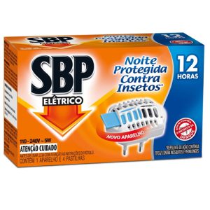 SBP Elétrico/Pastilha Regular Com Aparelho repele o mosquito da Dengue (da espécie Aedes aegypti), por até 12 horas* (*Eficácia de cada pastilha), proporcionando proteção para a familia e horas tranquilas de sono, sem necessidade de trocar o Refil SBP. O refil do SBP Elétrico Pastilha funciona em todos os aparelhos do mercado**, o que oferece ainda mais conforto e praticidade para você (**Não garantimos eficácia e segurança do uso do Refil SBP e aparelho de marcas diferentes).