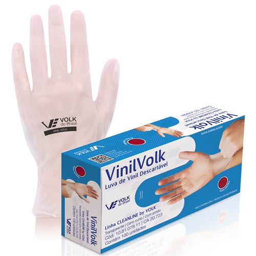 Luva de Procedimento Grande C/ Amido Vinil Transparente C/100 unidades Volk