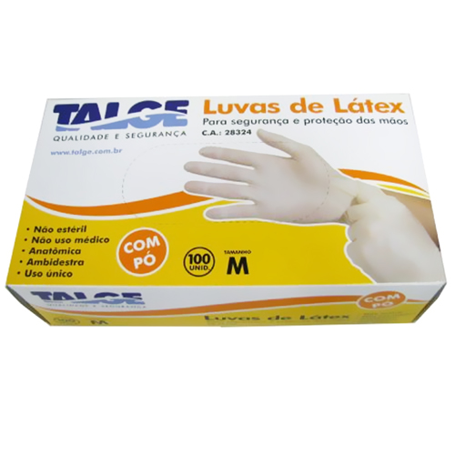 Luva de Procedimento Média Látex C/ Pó C/100 Unidades Talge