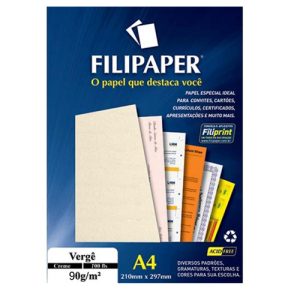 Papel Vergê A4 90g Creme 100 Folhas Filipaper