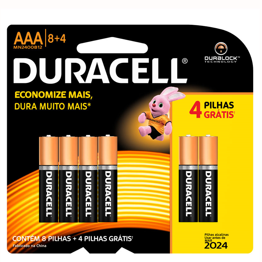 - A pilha Alcalina Duracell possui potência confiável e prolongada.