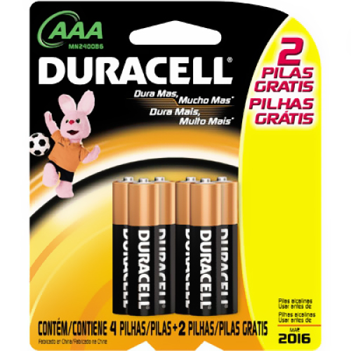 Pilha AAA Palito Alcalina L6 P4 6×1 Duracell