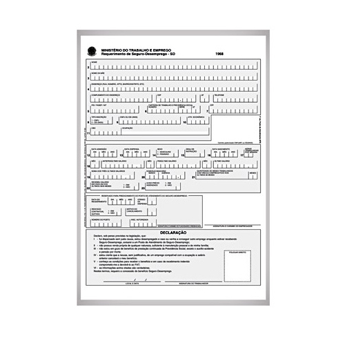 •Número de vias: 02 em papel autocopiativo slip copy (1a. via verde Requerimento do Seguro Desemprego / 2a. via marrom – Comunicado de Dispensa);