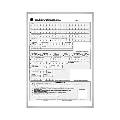 •Cor:(1a. via verde – Requerimento do Seguro Desemprego / 2a. via marrom -Comunicado de Dispensa);