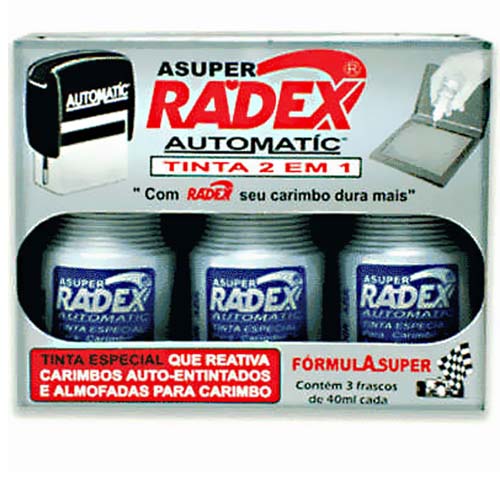 Tinta Carimbo Auto-Entintado 40ml C/ 3 Unidades Azul Radex