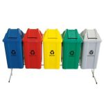 Cesto Coleta Seletiva Conjunto 5 Peças C/ Estrutura e Tampa Basculante 100 Litros T22 JSN Ref. T22 Capacidade: 100 litros Materiais Utilizados: Polipropileno e Aço Carbono Galvanizado Conjunto para coleta seletiva com 05 cestos quadrados com tampa vai-vem Disponível nas cores: Preto; Branco; Azul; Amarelo; Vermelho; Verde; Marrom; Laranja; Cinza...