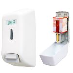 Saboneteira C/ Reservatório 950ml Branco Edecam Ref. S 400 Capacidade: 950ml Material: Polipropileno Cor: Tampa: Branca / Base: Bege Dimensões: Largura: 140mm x Profundidade: 112mm x Altura 272mm Abertura superior com chave, utilização de sabonete gel ou álcool gel, dispensa 1,2ml por acionamento