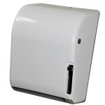 Toalheiro Interfolha 2 e 3 Dobras Branco Edecam Ref. T500 Materiais Utilizados: Polipropileno Cor: Tampa: Branco – Base: Bege Dimensões: Largura= 270mm x profunidade= 125mm, Altura= 320mm Abertura superior com chave, utilização para papel toalha com 2 ou 3 dobras